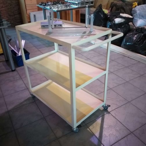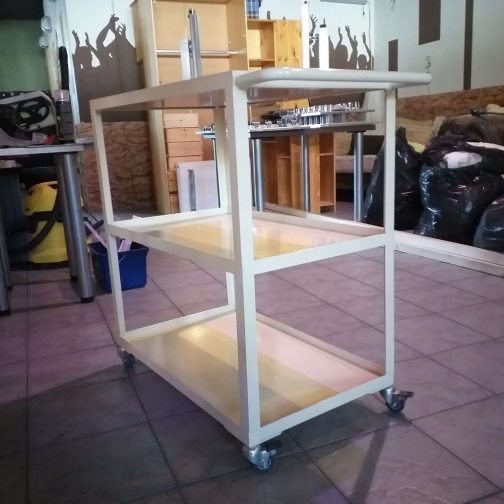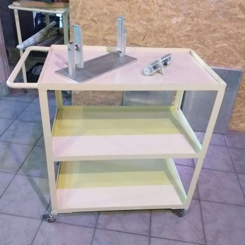 porfestett, masszív vázú ipari szerelőkocsi, lefékezhető kerekekkel